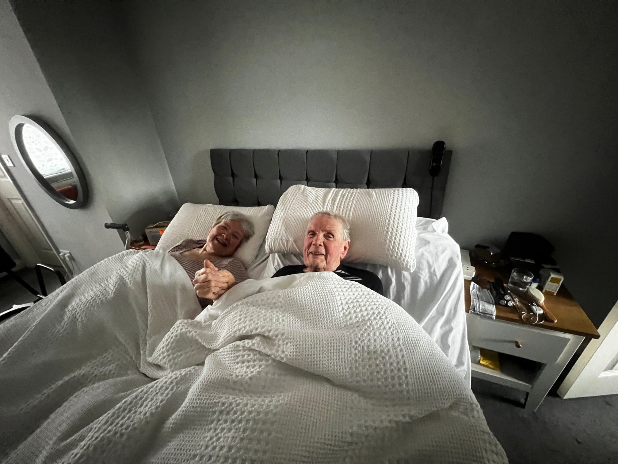 Barry has dementia and is the family member we’re caring for because he is very poorly with other ailments. He is surrounded by love. And he laughs at the same jokes every new day. Happy anniversary to them. They are a fine example of how a couple should grow old together.